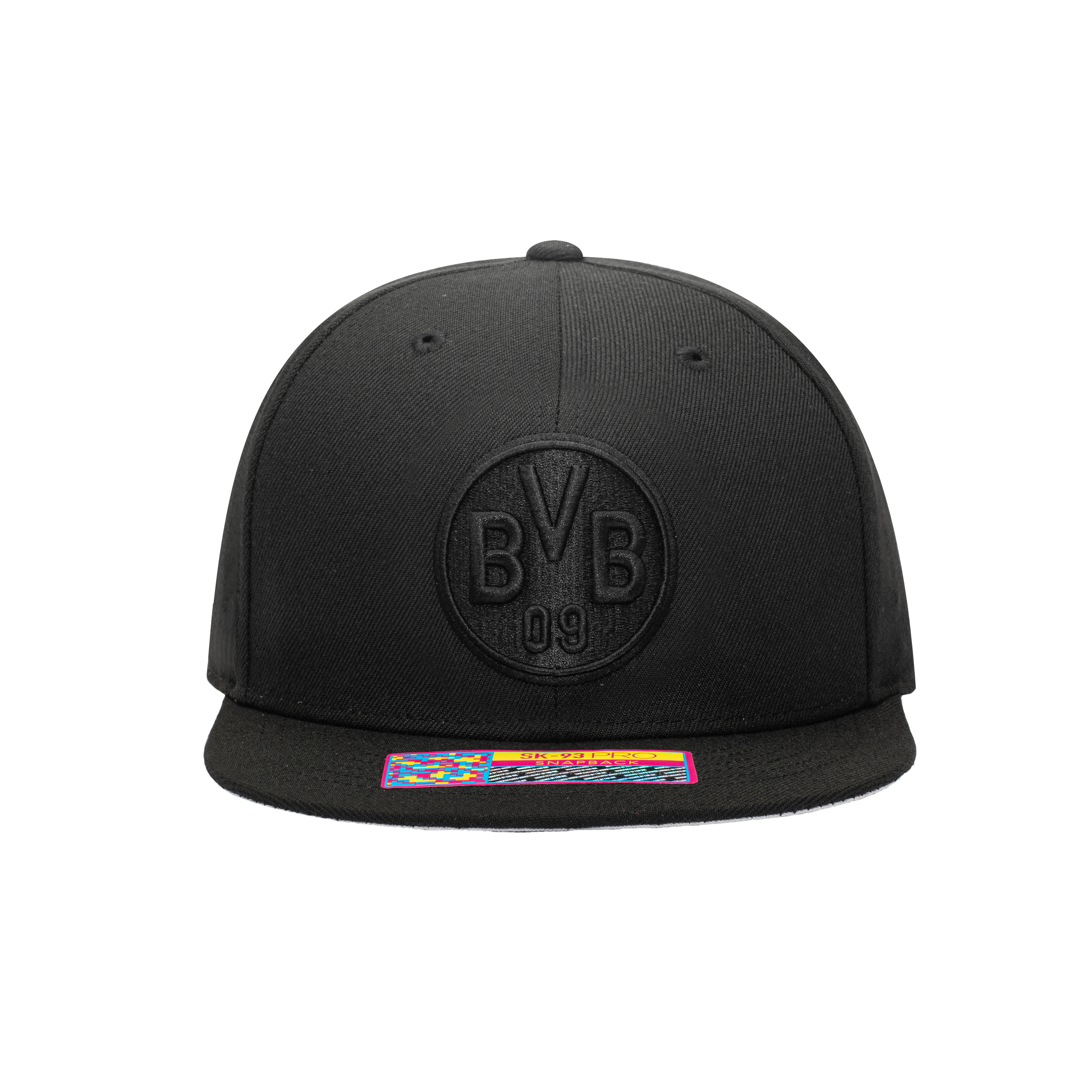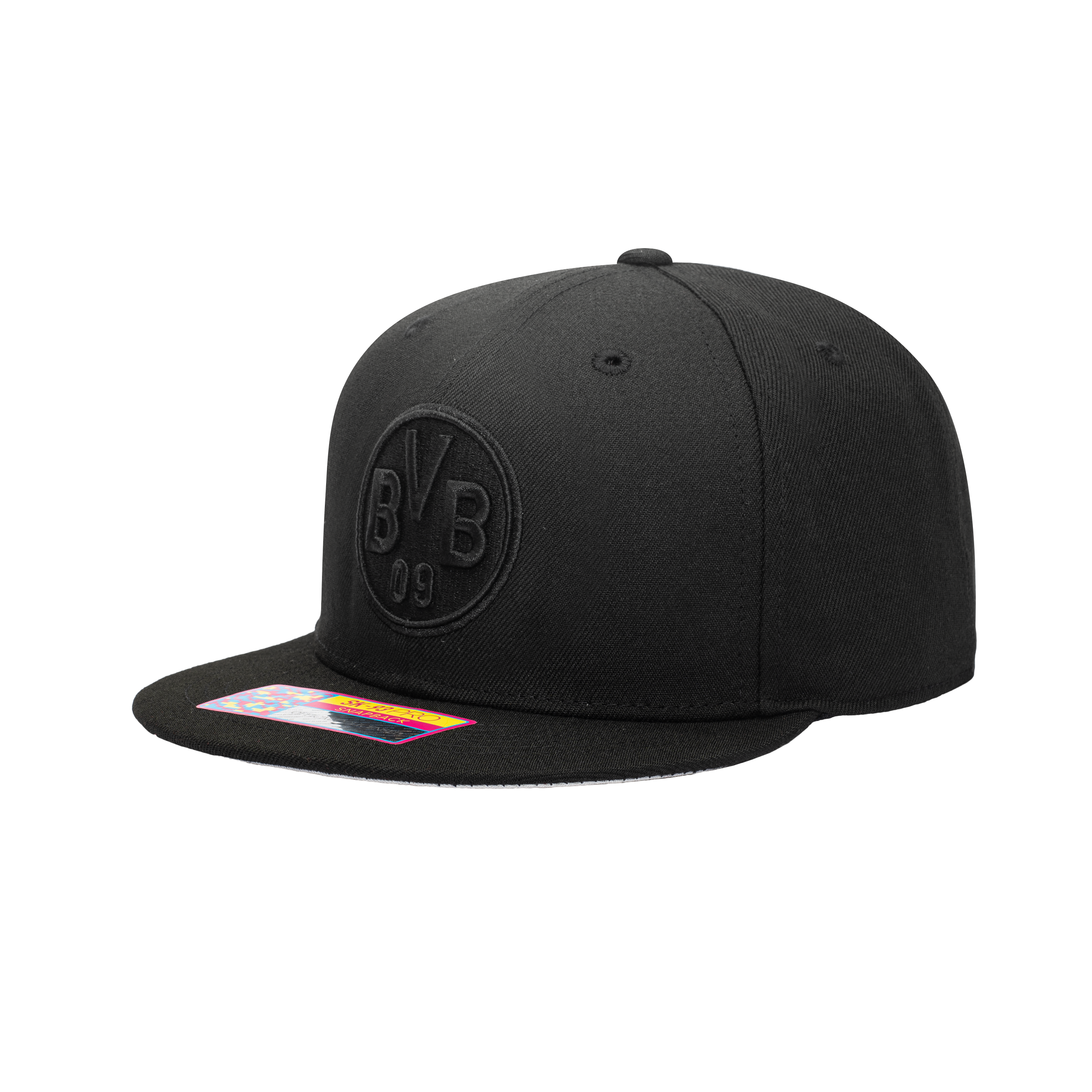 The Borussia Dortmund Dusk Snapback hat lets you show your support in style for "Die Schwarzgelben". The black and yellow without a doubt is synonymous to beautiful football which is why their die-hard fans never stop encouraging them during the 90 minutes of the match! This Dusk hat features a front 3D embroidery of the team logo as well as a back embroidery of the year the team was founded. It uses black embroidery on a black hat to subtly show your support for your team! The hat has a high crown and a flat peak that has a contrasting grey underpeak.